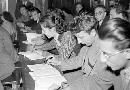 Photo: Fortepan. Entrance examination, Egyetem tér 1-3, ELTE. 1953, 17962, Magyar Rendőr, open access